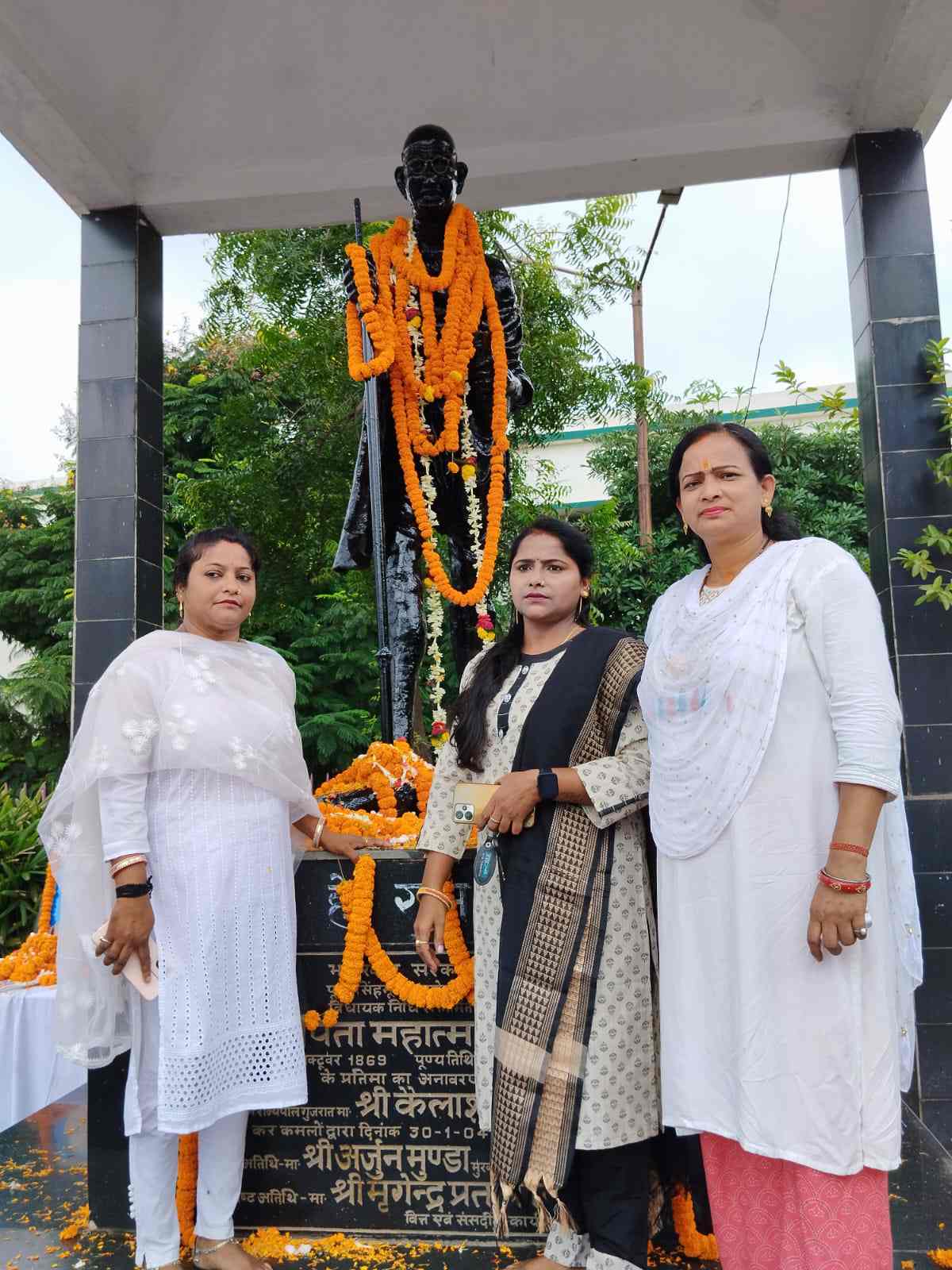 गांधी मैदान, मानगो में राष्ट्रपिता की प्रतिमा पर पूर्वी सिंहभूम सेवादल कांग्रेस महिला विंग के मुख्य संगठक के नेतृत्व में समेत अन्य ने पुष्प अर्पित कर किया नमन