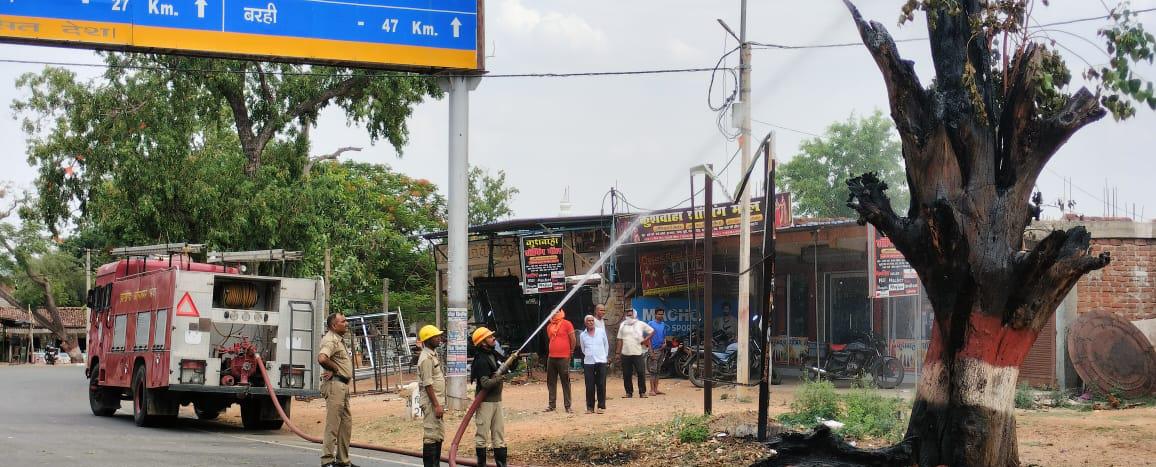 गुल्ली मोड़ में एक सूखे आम के पेड़ व बांस में लगी आग, दमकल टीम ने पाया आग पर काबू