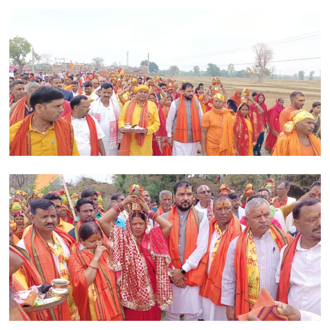 सात दिवसीय रुद्र महायज्ञ के कलश यात्रा में बतौर मुख्य अतिथि शामिल हुए जिला परिषद उपाध्यक्ष बिरजू तिवारी