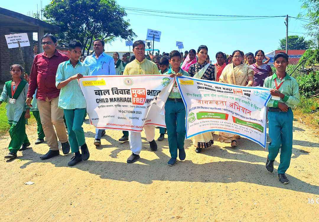 बरही : बाल विवाह मुक्त कराने के लिए बुनियादी स्कूल के बच्चों ने निकाली रैली
