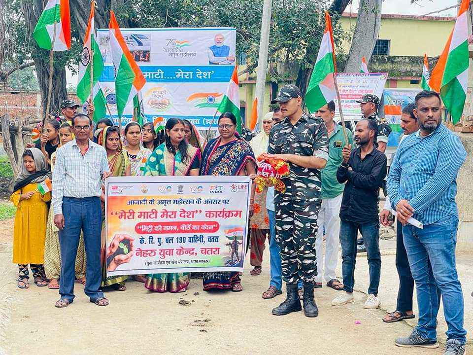 चतरा : सीआरपीएफ 190वी वाहिनी एवं नेहरू युवा केन्द्र द्वारा मेरी माटी मेरा देश के तहत अमृत कलश यात्रा निकाली गई