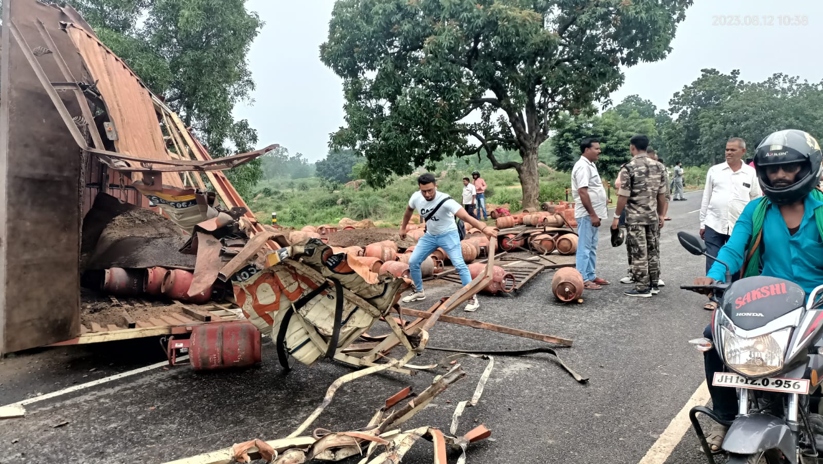 तिसरी : गैस सिलेंडर से भरा ट्रक पलटा, कोई हताहत नहीं, चालक घायल