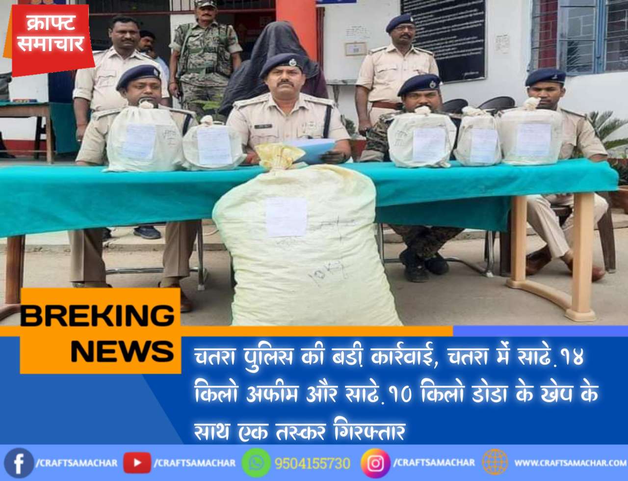 चतरा पुलिस की बड़ी कार्रवाई, चतरा में साढ़े 14 किलो अफीम और साढ़े 10 किलो डोडा के खेप के साथ एक तस्कर गिरफ्तार