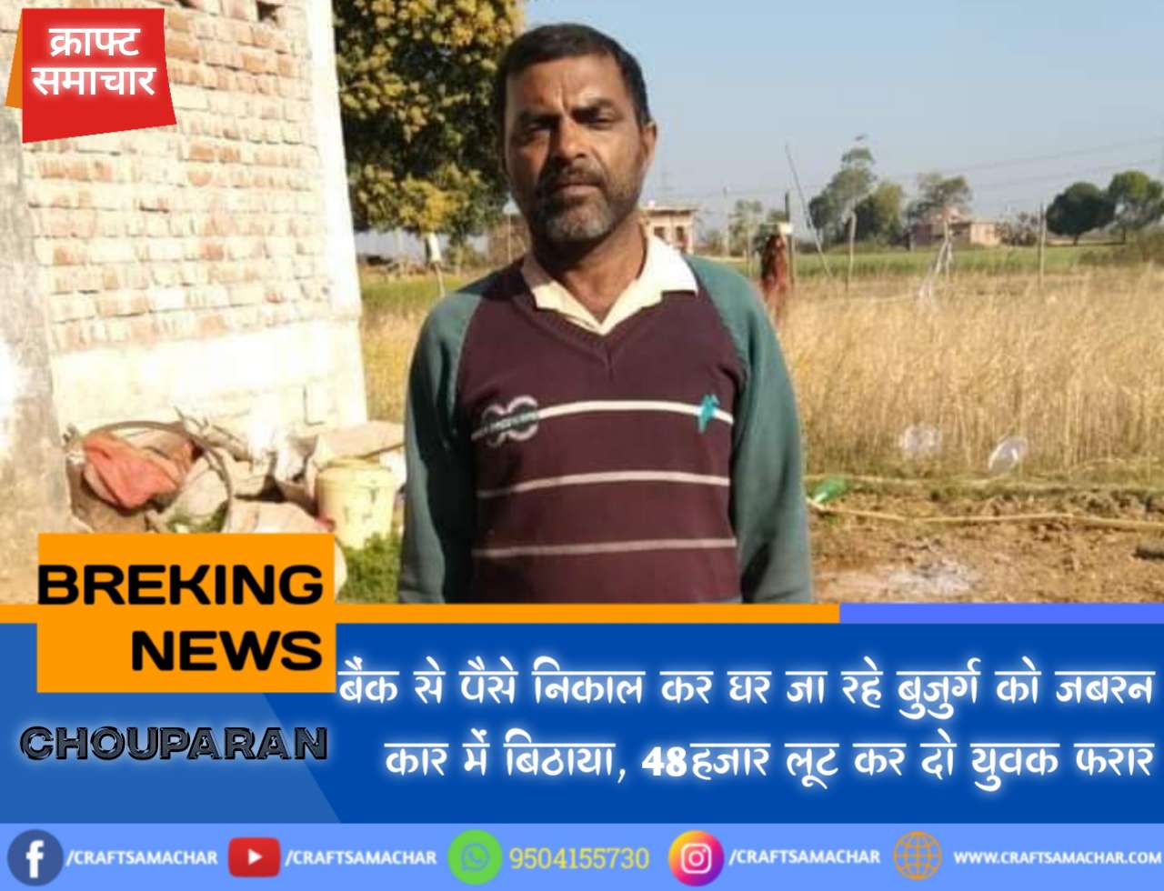 Chouparan:- बैंक से पैसे निकाल कर घर जा रहे बुजुर्ग को जबरन कार में बिठाया, 48 हजार लूट कर दो युवक फरार