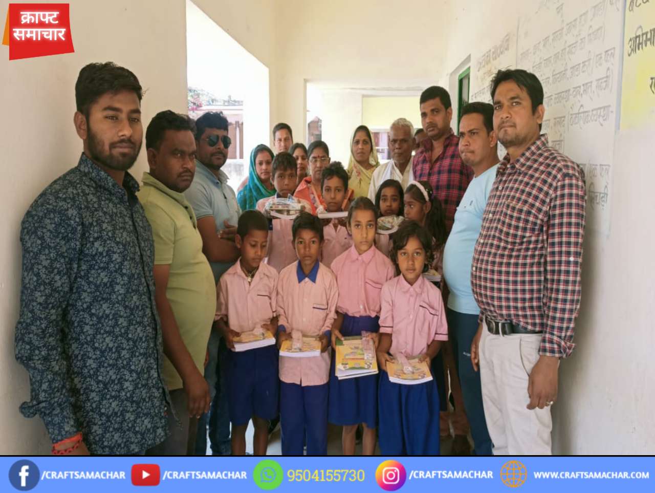 बसरिया मुखिया ने उत्क्रमित उच्च विद्यालय में शैक्षणिक किट का वितरण किया