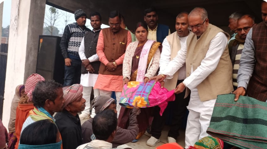 जरुतमंदो के बीच कंबल का वितरण करते बरही के पूर्व विधायक- Chouparan