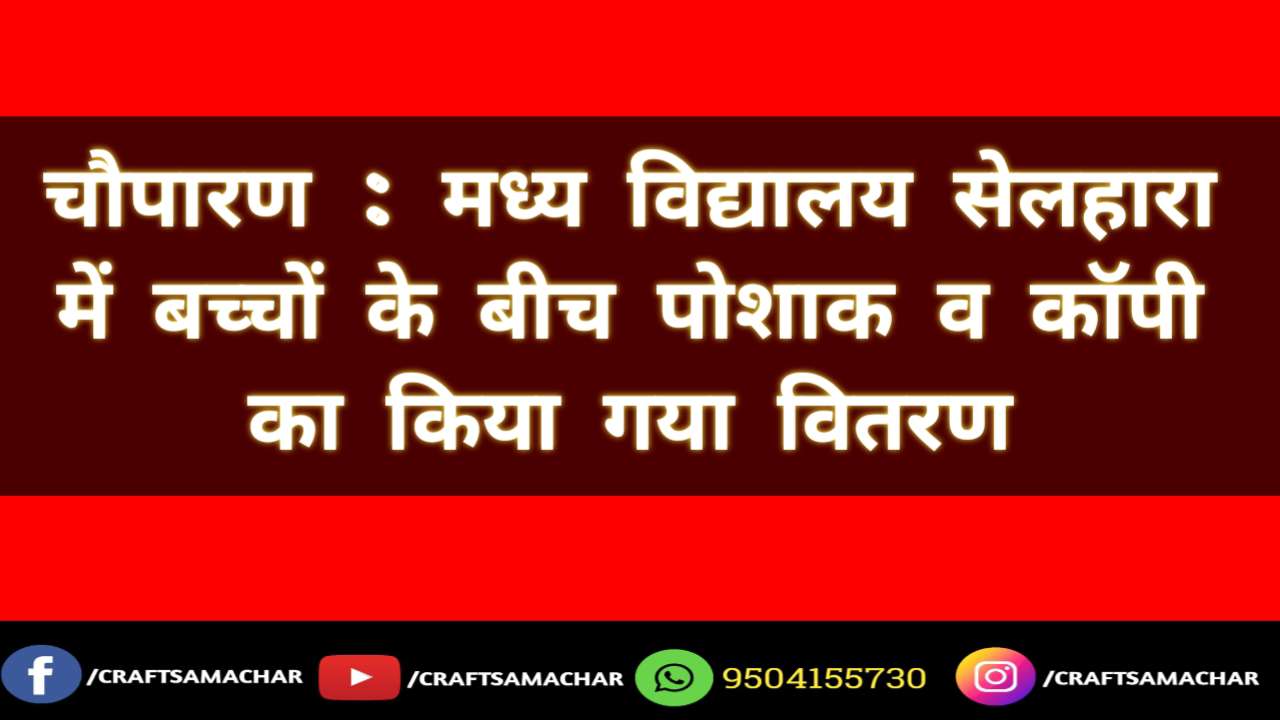 चौपारण : मध्य विद्यालय सेलहारा में बच्चों के बीच पोशाक व कॉपी का किया गया वितरण