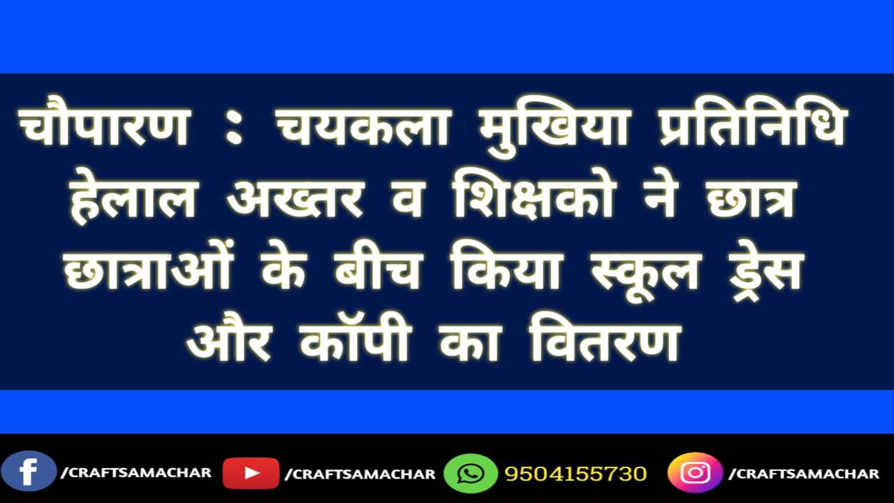 चौपारण : चयकला मुखिया प्रतिनिधि हेलाल अख्तर व शिक्षको ने छात्र छात्राओं के बीच किया स्कूल ड्रेस और कॉपी का वितरण