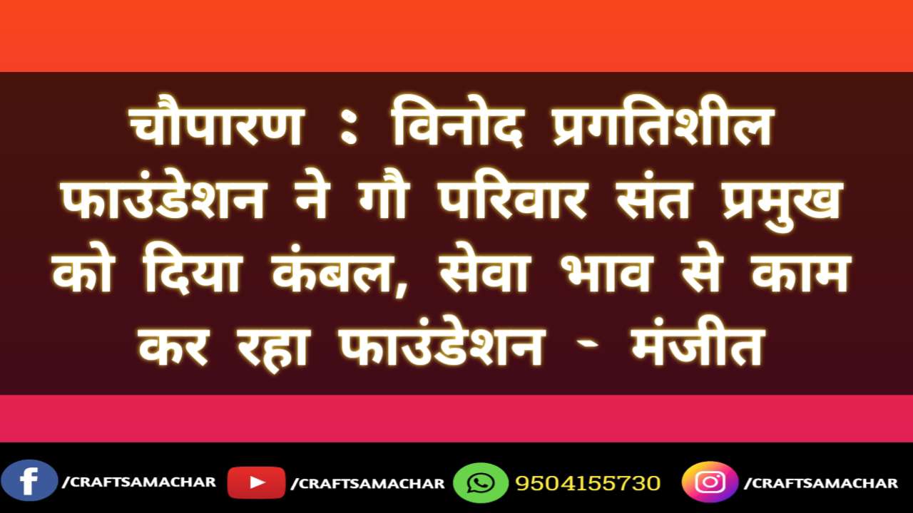 चौपारण : विनोद प्रगतिशील फाउंडेशन ने गौ परिवार संत प्रमुख को दिया कंबल, सेवा भाव से काम कर रहा फाउंडेशन – मंजीत