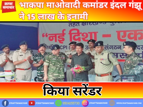 भाकपा माओवादी कमांडर इंदल गंझू ने 15 लाख के इनामी, किया सरेंडर