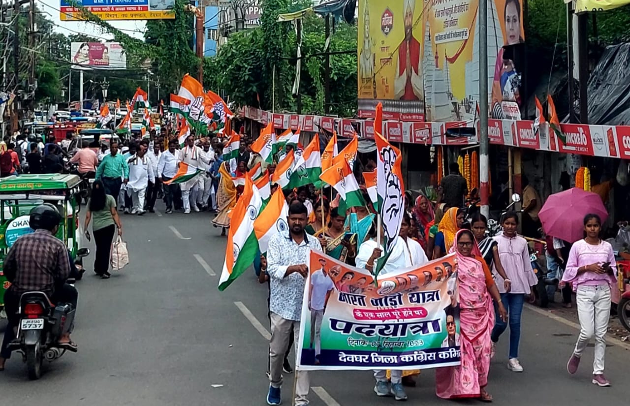 भारत जोड़ो यात्रा के एक वर्ष पुरे होने पर कांग्रेस ने कार्यालय से टावर चौक तक निकाली पदयात्रा