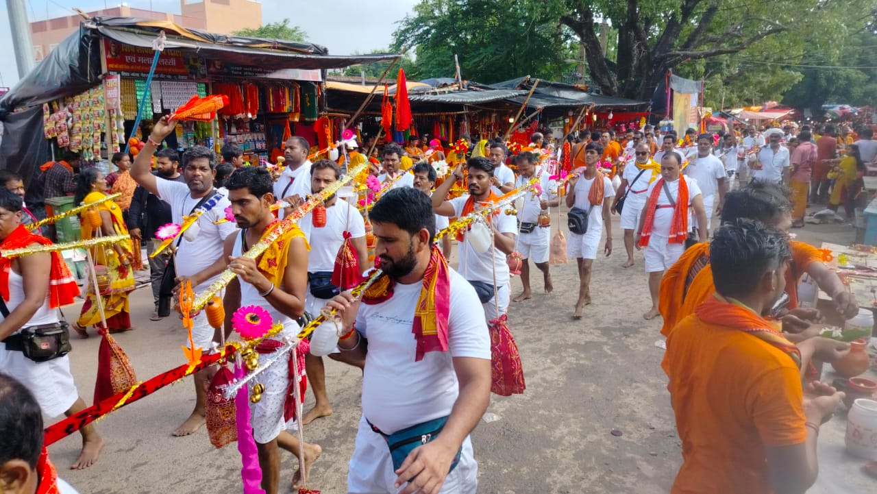 देवघर : सावन के चौथे सोमवारी को लेकर शनिवार को हजारों कांवरिया अजगैविनाथ धाम से हुए बैधनाथधाम रवाना