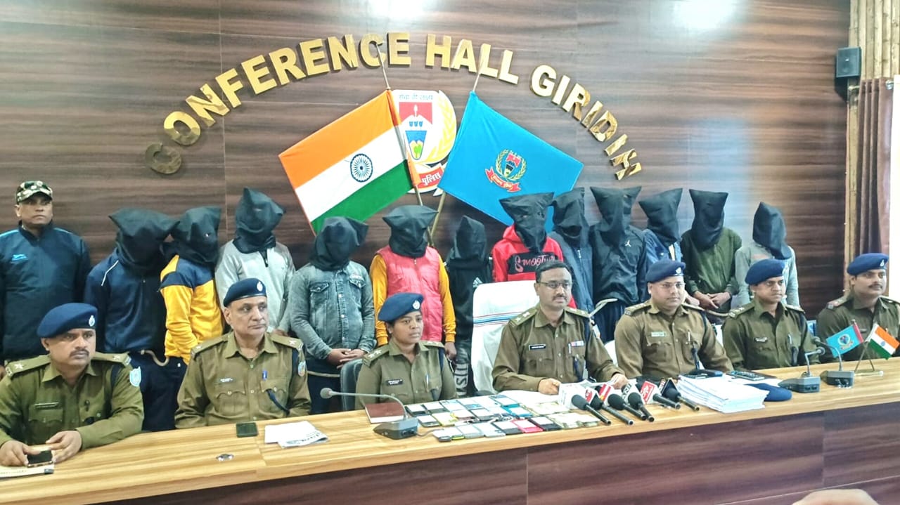 गिरिडीह : अपराधियों के खिलाफ बड़ी कार्रवाई, 12 साइबर अपराधी गिरफ्तार, पुलिस ने 2.19 लाख नकद, 19 मोबाइल फोन, 33 सिम कार्ड, एक एटीएम और 5 बाइक बरामद