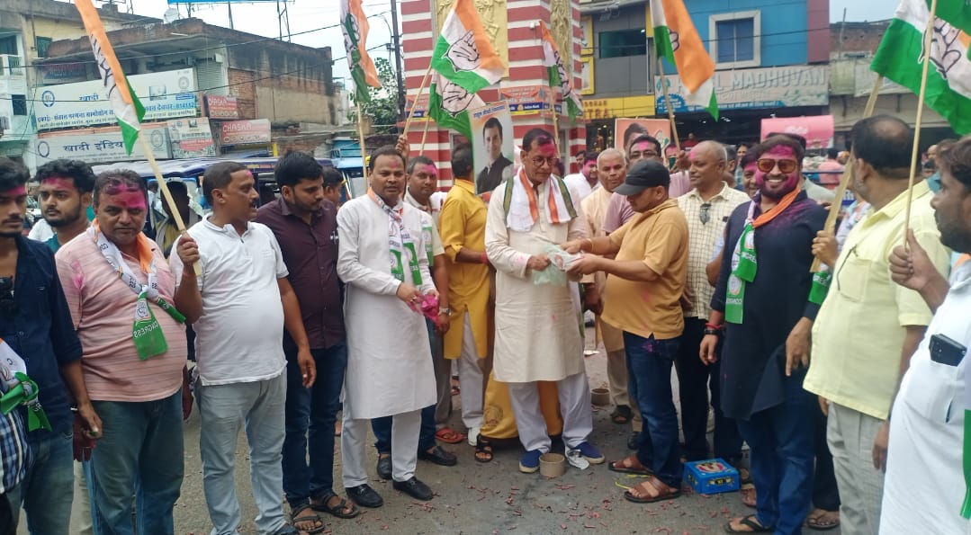 देवघर : राहुल गांधी की सजा पर सुप्रीम कोर्ट से रोक लगाए जाने पर महागठबंधन के लोगों ने मनाया जश्न
