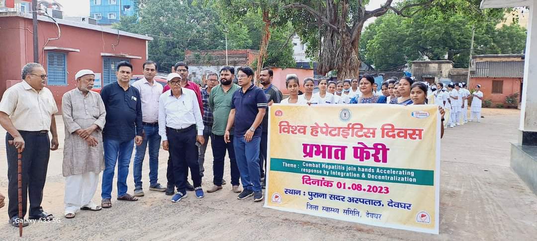 देवघर : विश्व हेपेटाइटिस दिवस के अवसर पर हेल्दी लिवर कैंपेन की जागरूकता अभियान के लिए निकली गई प्रभातफेरी