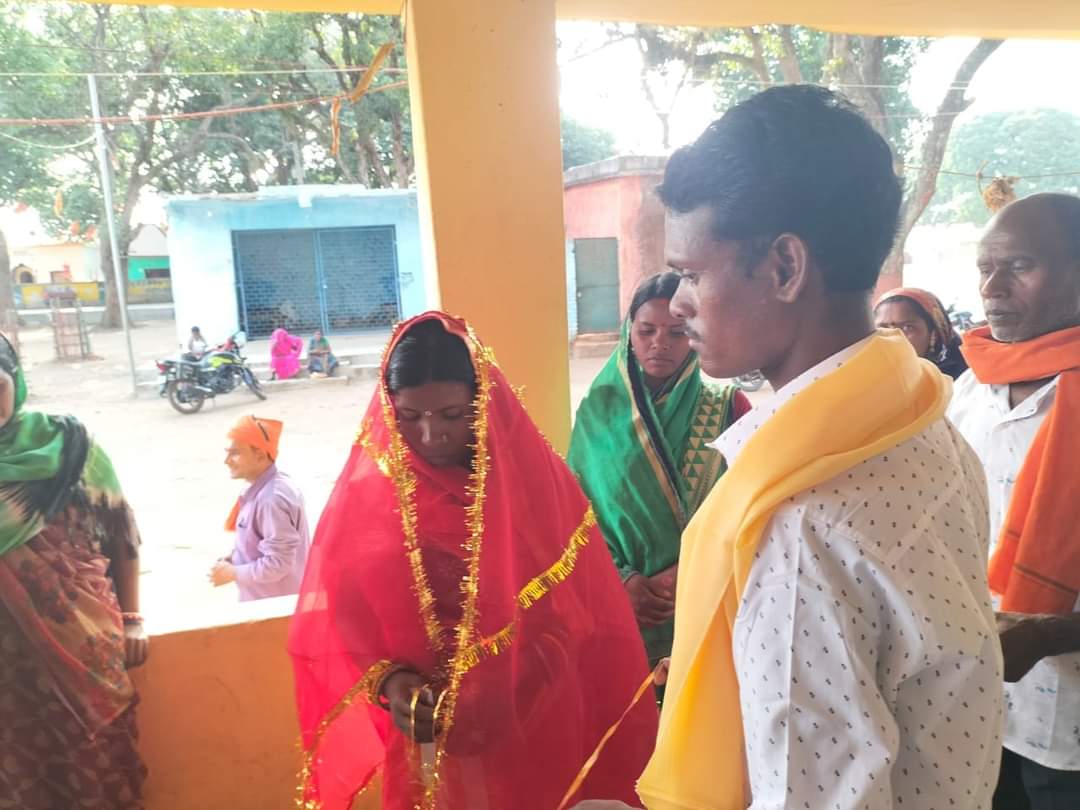 गिद्धौर/कान्हाचट्टी (चतरा): लोग कहते हैं कि प्रेम में वशीभूत होने पर आदमी को कुछ भी नहीं दिखता रंग-रूप जाति बिरादरी यहां तक की उम्र के बाधा भी पीछे छूट जाती है। कुछ ऐसा ही हुआ है। कान्हाचट्टी प्रखंड के चिरिदिरी पंचायत अंतर्गत पुरनीहेसाग गांव में जहां एक 25 वर्षीय पुरुष ने 40 वर्षीय विधवा महिला से शादी रचा ली। शादी को सामाजिक मान्यता भी मिल गई। सामाजिक स्तर पर लिए गए फैसले के बाद दोनों की शादी कराई गई। मामला प्रेम प्रसंग से जुड़ा बताया गया है। वहीं कोल्हैया पंचायत अंतर्गत नौवडीहा गांव के एक युवक और चिरिदीरी पंचायत अंतर्गत पुरनीहेसाग गांव के एक विधवा महिला के बीच अरसे से प्रेम प्रसंग चल रहा था। युवक की मौजूदगी बीती रात देखी गई। इस दौरान स्थानीय लोगों ने दोनों को आपत्तिजनक स्थिति में पकड़ लिया। हालांकि दोनों के बीच में लंबे समय से प्रेम प्रसंग चल रहा था। सोमवार को ग्रामीणों ने बैठक कर सामाजिक स्तर पर दोनों की शादी कराने का फैसला लिया। इसके बाद आनन-फानन में शायल बगीचा परिसर में सोमवार को ही जरूरी सामान जुटाया गया। और दोनों की शादी कराई गई। शादी के बाद दोनों एक दूसरे के हो गए। विधवा महिला के 3 बच्चे हैं। युवक की विधवा महिला संग शादी रचाने की की बात क्षेत्र में चर्चा का विषय बना हुआ है।