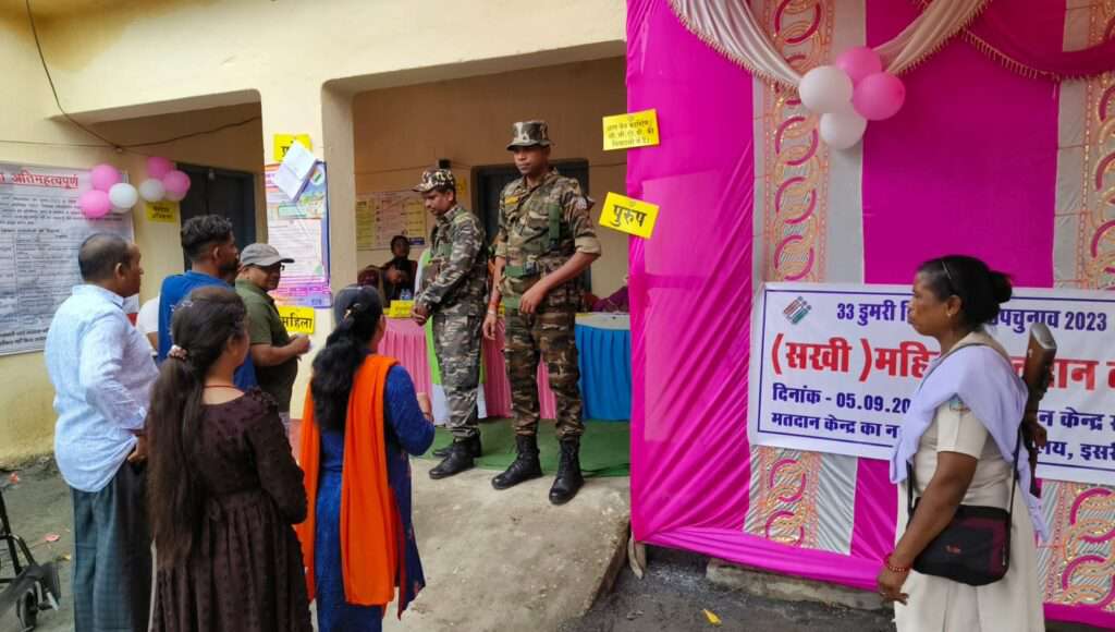 गिरिडीह डुमरी उपचुनाव : उपचुनाव को लेकर लोगों में काफी उत्साह देखा जा रहा है. डुमरी विधानसभा उपचुनाव में सुबह 9 बजे तक 11.40 फीसदी मतदान हुआ. गिरिडीह जिला प्रशासन ने 10 मॉडल बूथ केंद्र बनाये हैं. वहीं डुमरी प्रखंड के इसरी बाजार के पारसनाथ रेलवे स्टेशन के समीप लैंप्स कार्यालय के मतदान केंद्र 132 को सखी महिला मतदान केंद्र बनाया गया है. डुमरी प्रखंड के इस एकमात्र सखी महिला मतदान केंद्र पर महिला मतदाताओं की भीड़ देखी गयी. इस एकमात्र महिला मतदान केंद्र की साज-सज्जा भी बेहद खास थी. गुब्बारे सजाए गए, सेल्फी प्वाइंट भी बनाया गया। इस दौरान महिलाएं और लड़कियां वोट देने के बाद सेल्फी भी लेती नजर आईं. वहीं महिला सखी मतदान केंद्र के पास स्थित दूसरे मतदान केंद्र पर मतदाताओं की कोई खास भीड़ नहीं देखी गयी.