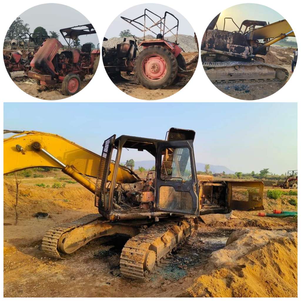 गुरुवार की देर रात हथियारबंद नक्सली सड़क निर्माण स्थल की साइडिंग पर पहुंच गए। नक्सलियों ने वहां मौजूद मजदूरों को निकालने के दौरान साइडिंग में खड़े ट्रैक्टर और पोकलेन को जला दिया. नक्सलियों ने कार्यकर्ताओं से कहा कि बिना संगठन के आदेश के काम शुरू न करें, नहीं तो गंभीर परिणाम भुगतने होंगे। एक घंटे तक हंगामा करने के बाद नक्सली वहां से चले गए।