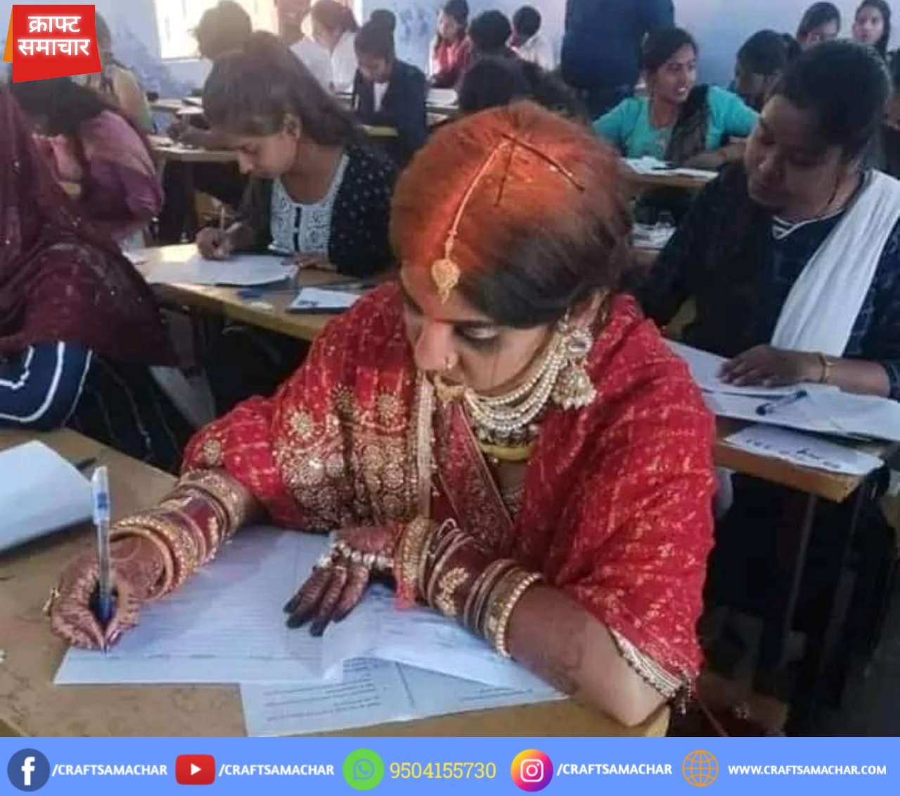 नयी नवेली दुल्हन के लाल जोड़े और सिंदूर में तेनुघाट कॉलेज में कांस्टेबल संग पहुंची परीक्षा केंद्र